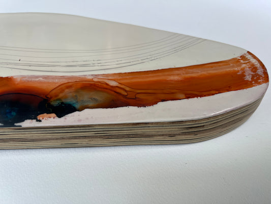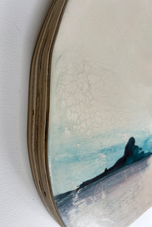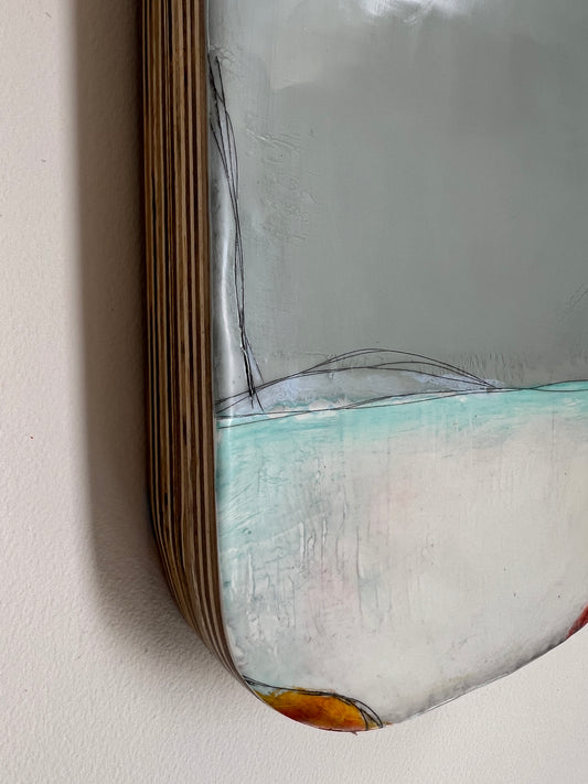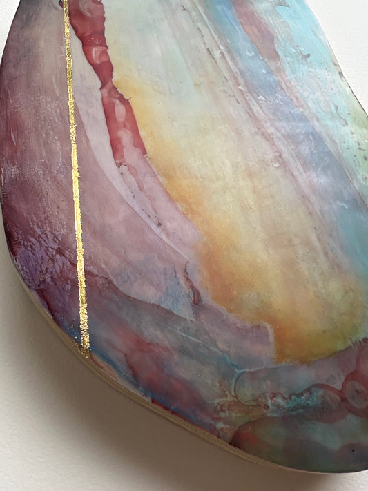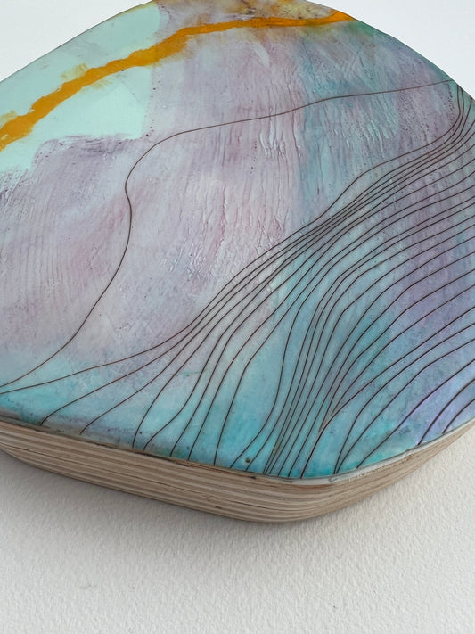 I’ve been creating art my whole life. I’ve also always been a lover of nature and the great outdoors since I can remember. The artwork I create, whether it is the materials or the subject matter itself, will almost always have a connection to nature. Encaustic is made from beeswax and tree resin, which somehow naturally seems to have the most incredible soothing effect. Watercolors create ethereal lands, usually complemented by the use of gold or copper leafing. My cold wax & oil paintings usually depict an abstracted landscape with subtle earth tones, contrasted by small bits of breaking light. I have taken many different paths with artwork but the sure constant is that inspiration is always available if you step outside.