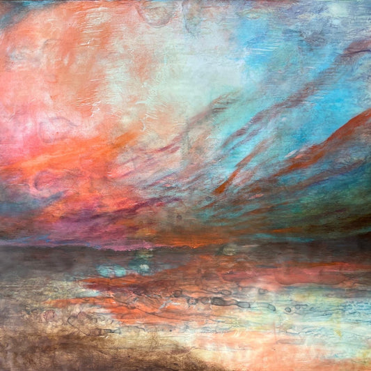 I’ve been creating art my whole life. I’ve also always been a lover of nature and the great outdoors since I can remember. The artwork I create, whether it is the materials or the subject matter itself, will almost always have a connection to nature. Encaustic is made from beeswax and tree resin, which somehow naturally seems to have the most incredible soothing effect. Watercolors create ethereal lands, usually complemented by the use of gold or copper leafing. My cold wax & oil paintings usually depict an abstracted landscape with subtle earth tones, contrasted by small bits of breaking light. I have taken many different paths with artwork but the sure constant is that inspiration is always available if you step outside.