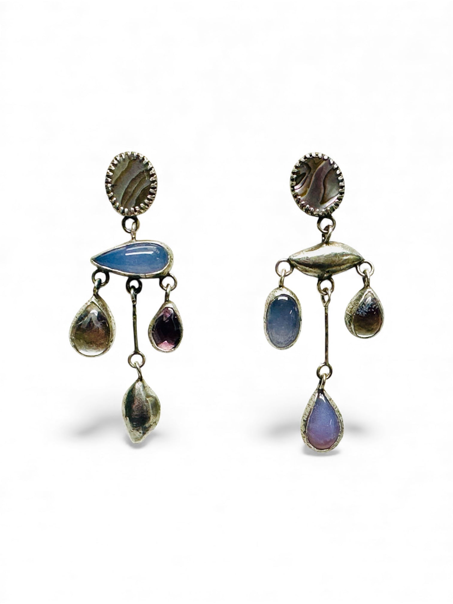 Chalcedony, Dumerite Quartz, Amethyst, Abalone, Sterling Silver